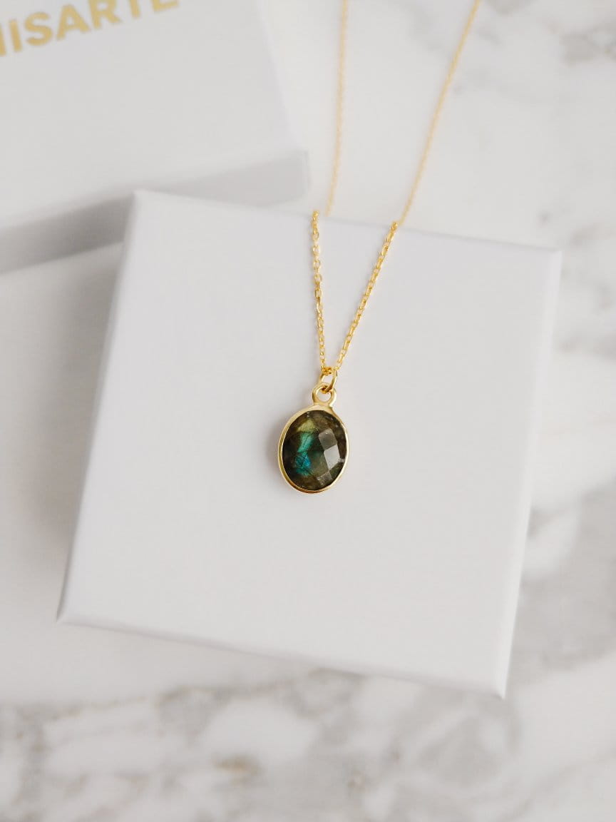 Labradorite necklace oval gold