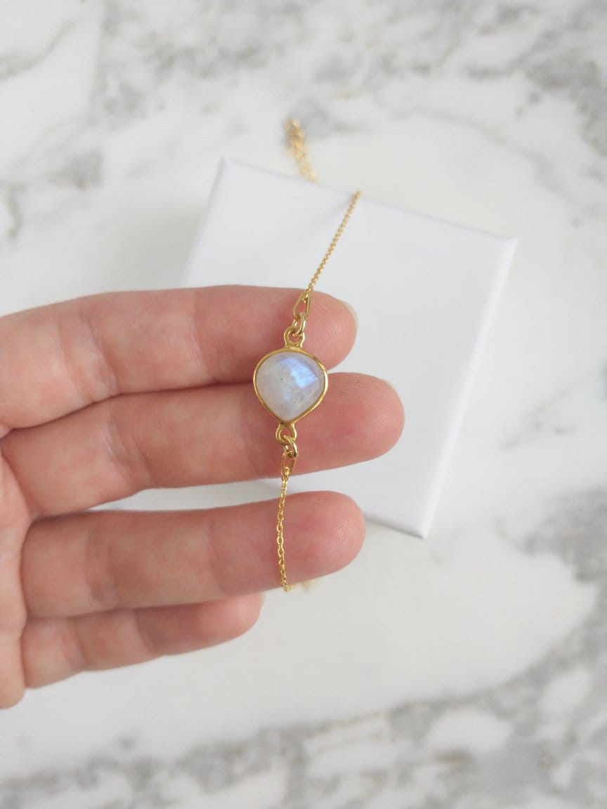 Bransoletka z kamieniem księżycowym łezka złoto