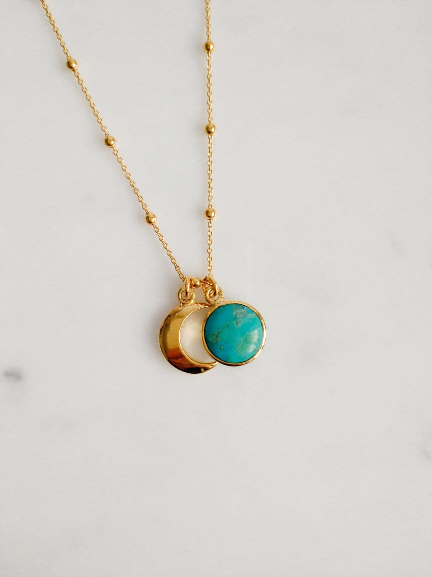 Naszyjnik Duet Gold z turkusem arizońskim i księżycem
