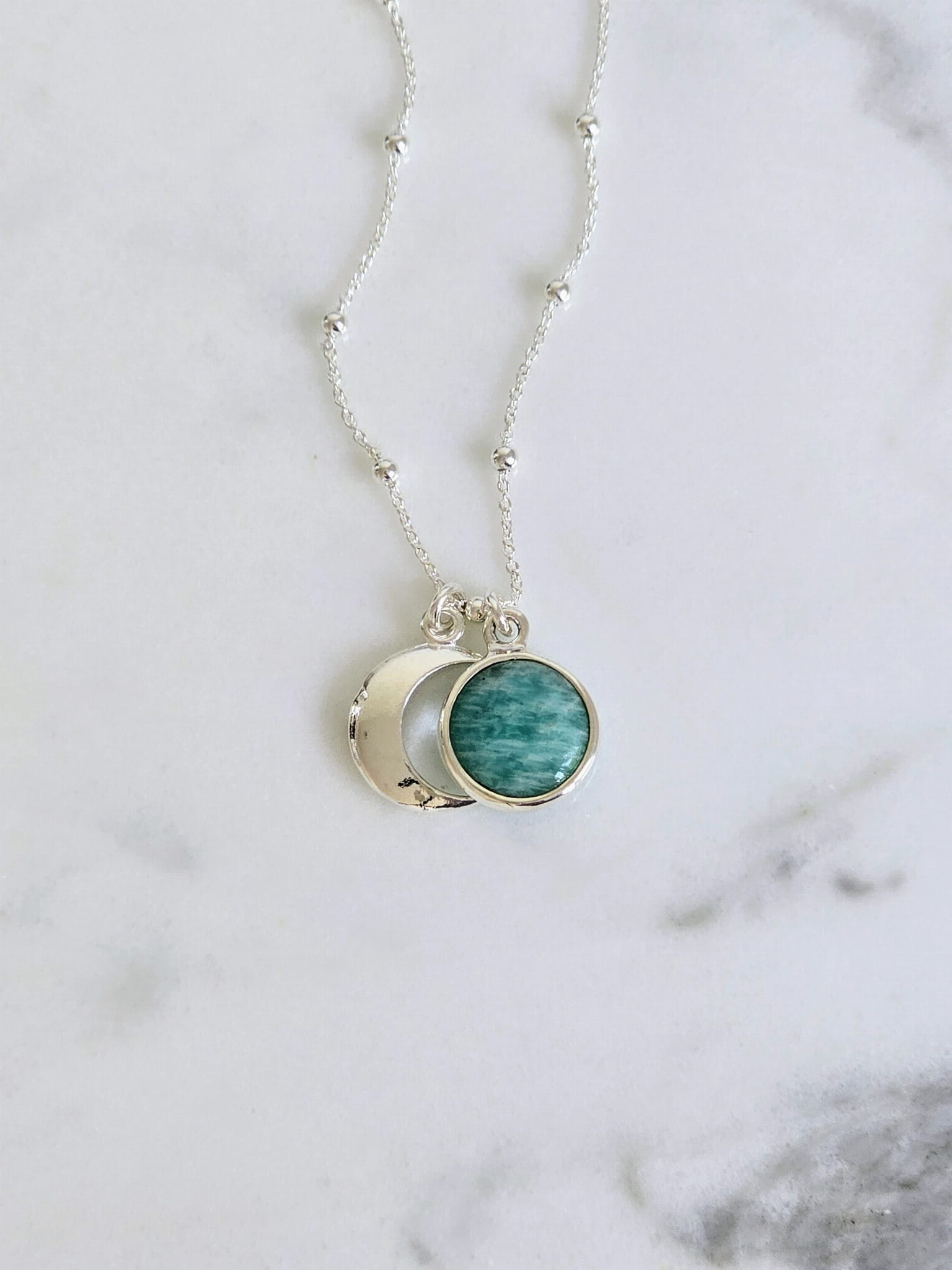 Naszyjnik Duet Silver z amazonitem i księżycem