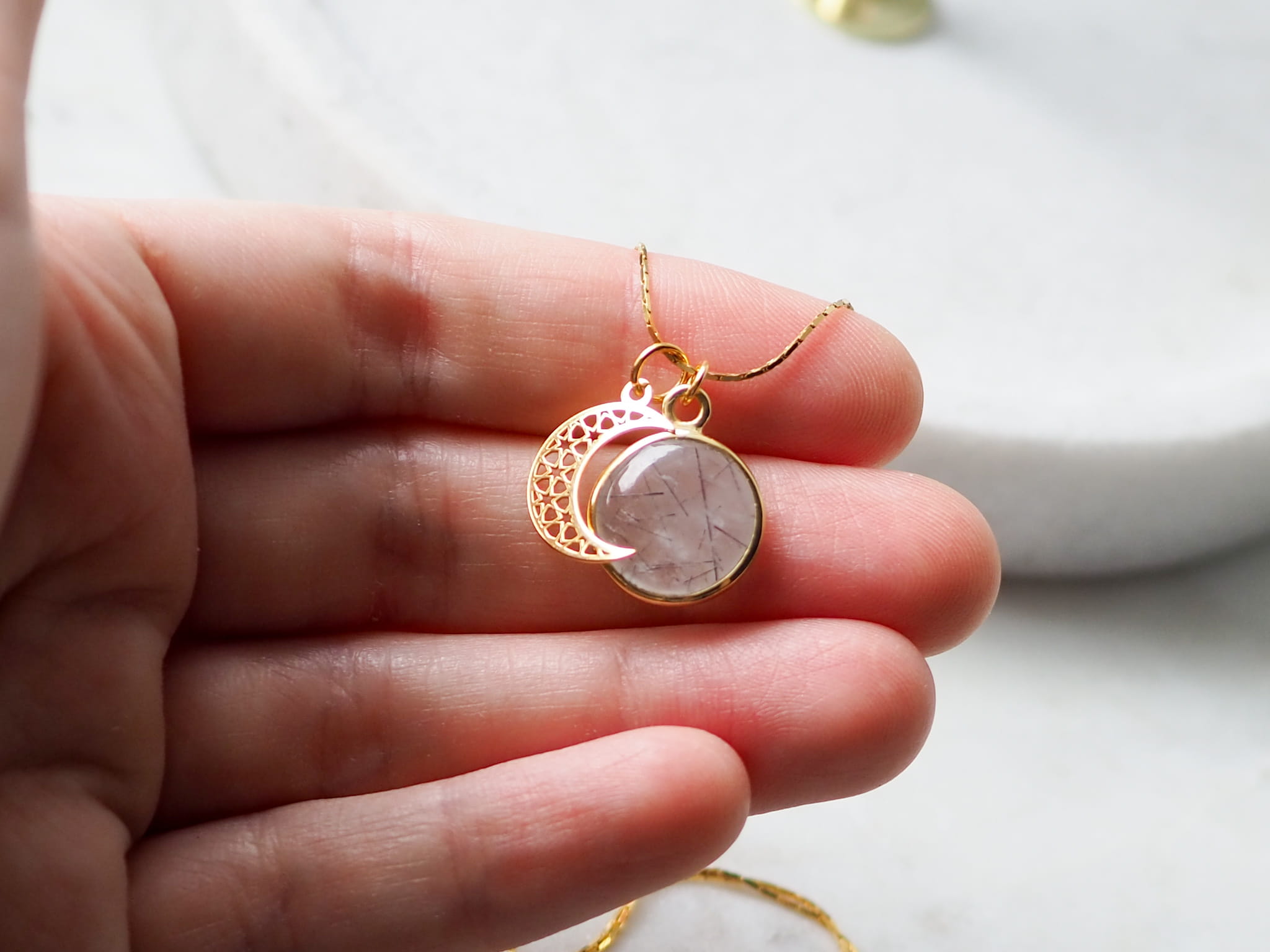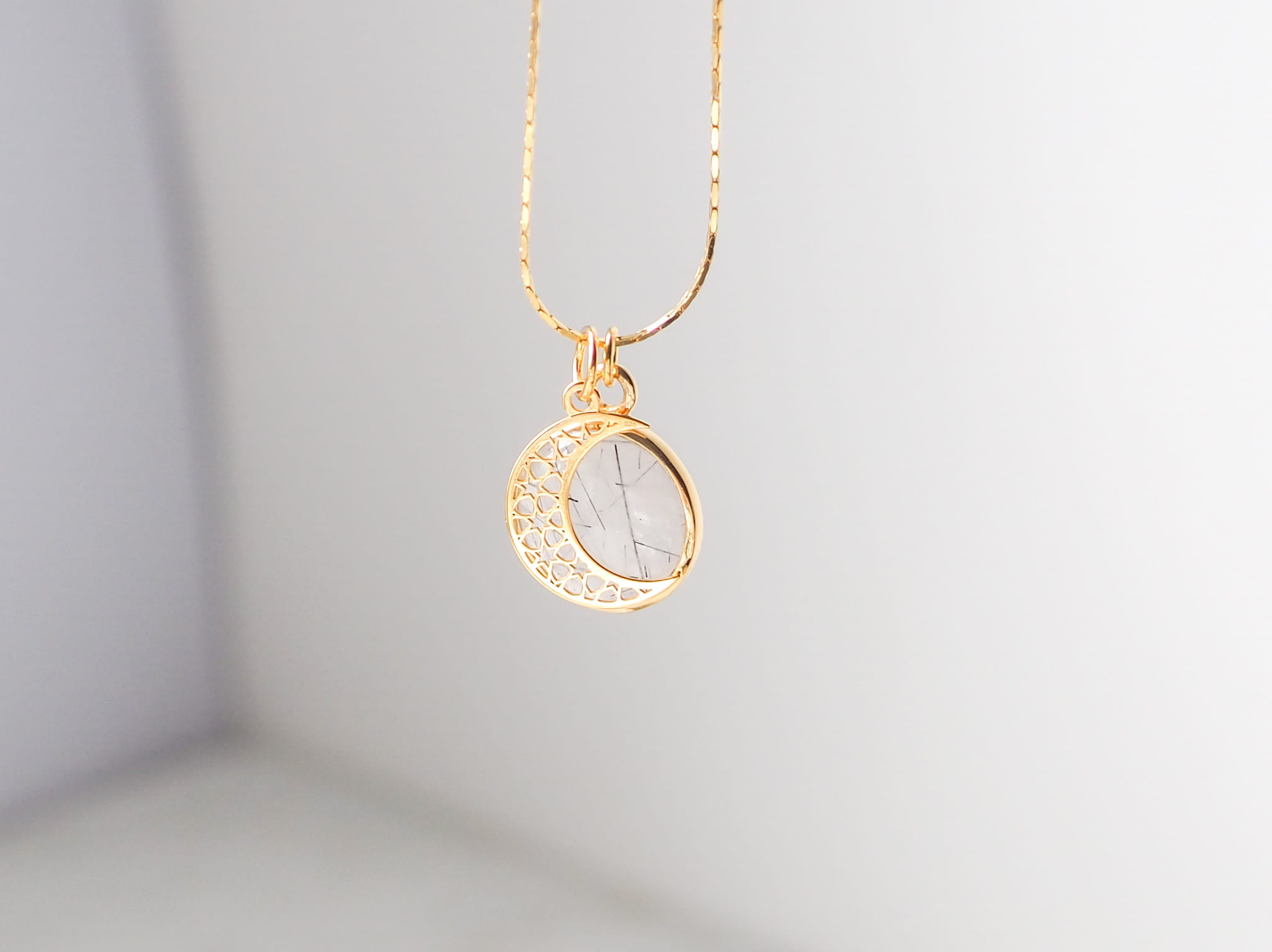 Naszyjnik Orient Moon Gold z kwarcem turmalinowym