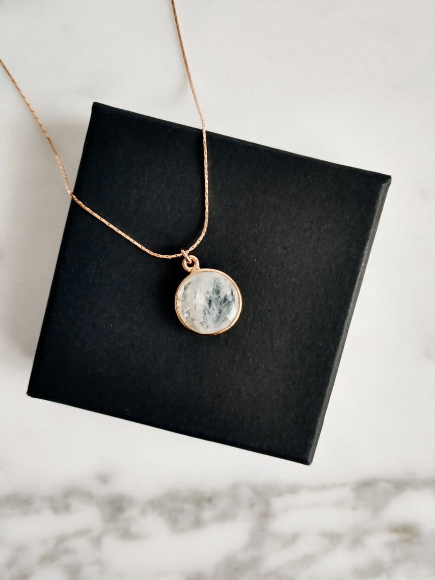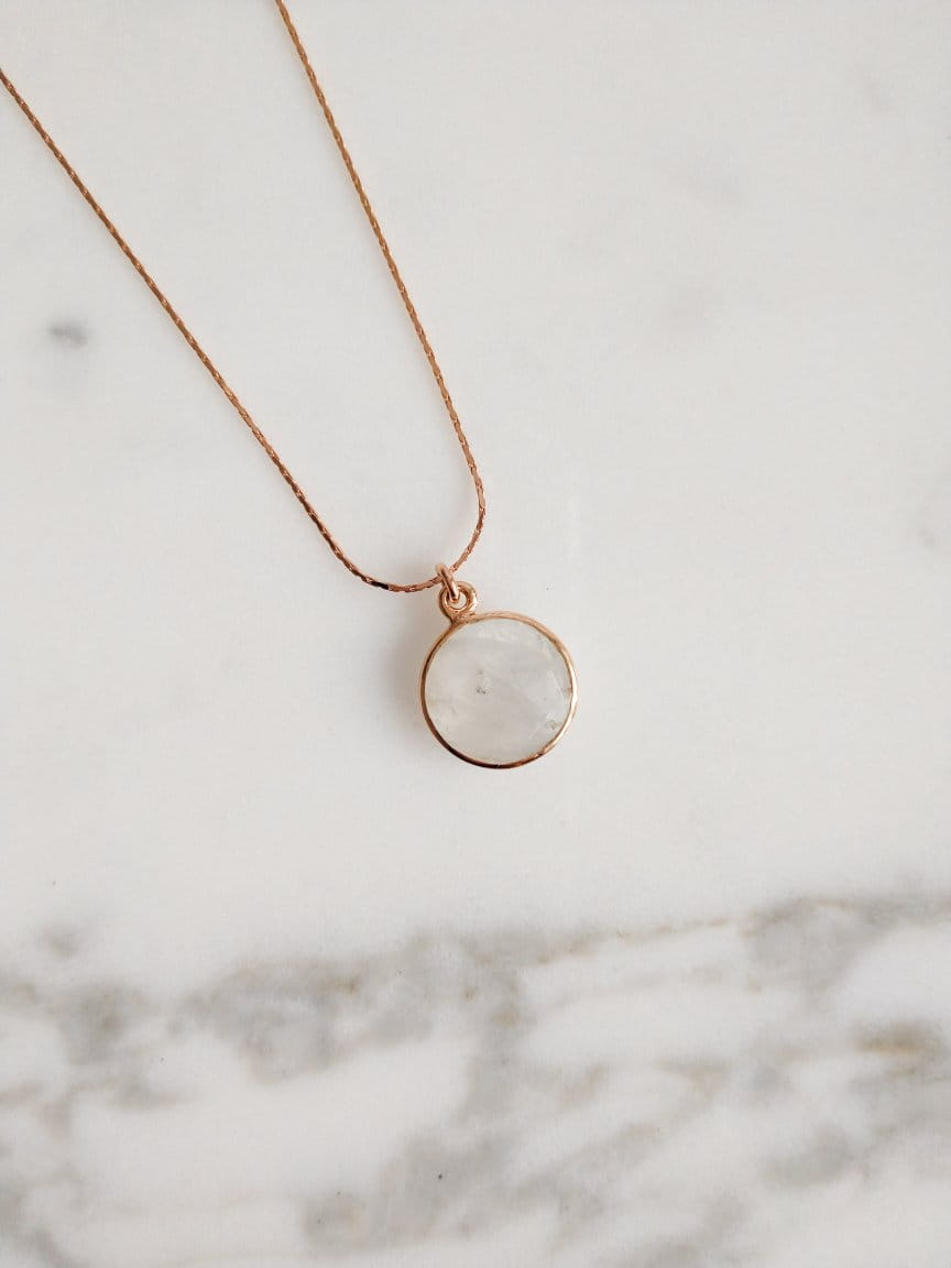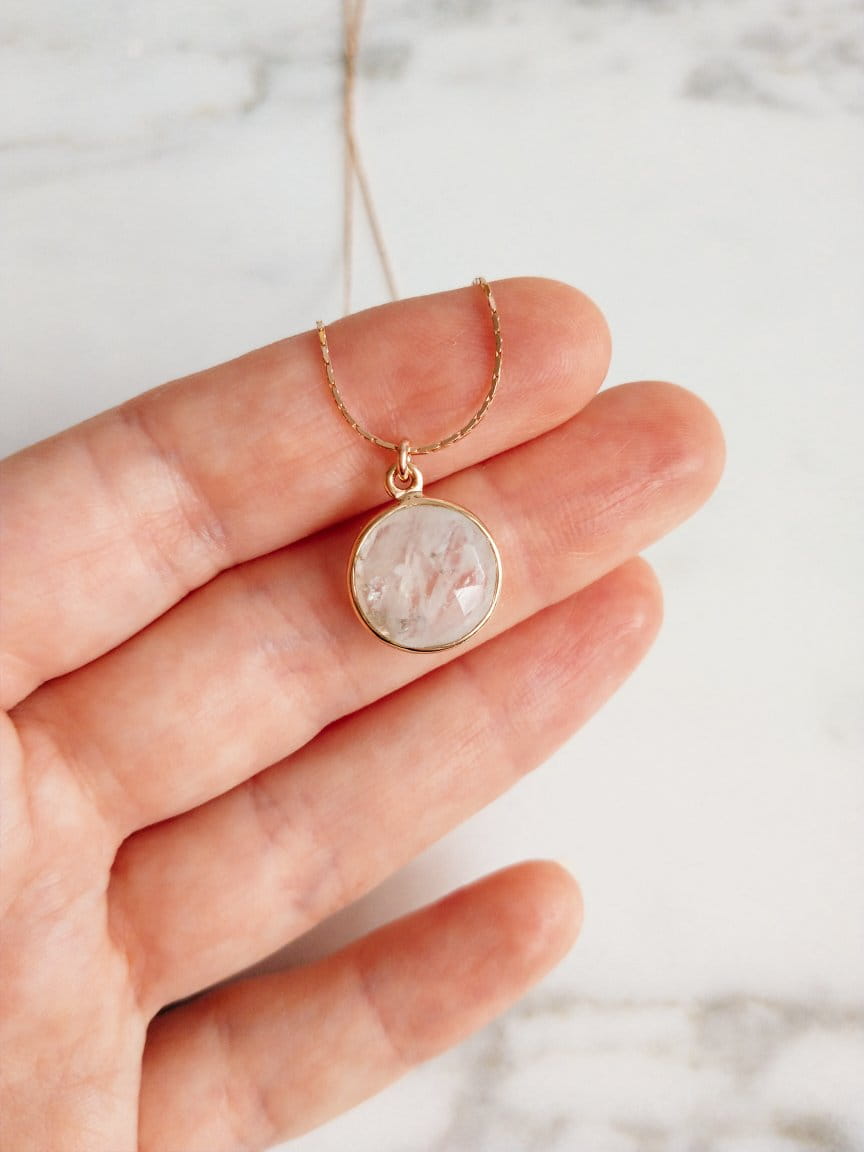 Naszyjnik z kamieniem księżycowym okrąg różowe złoto