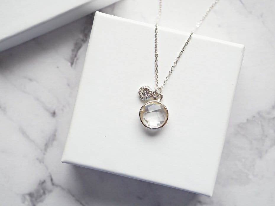 Naszyjnik z kwarcem górskim i cyrkonią