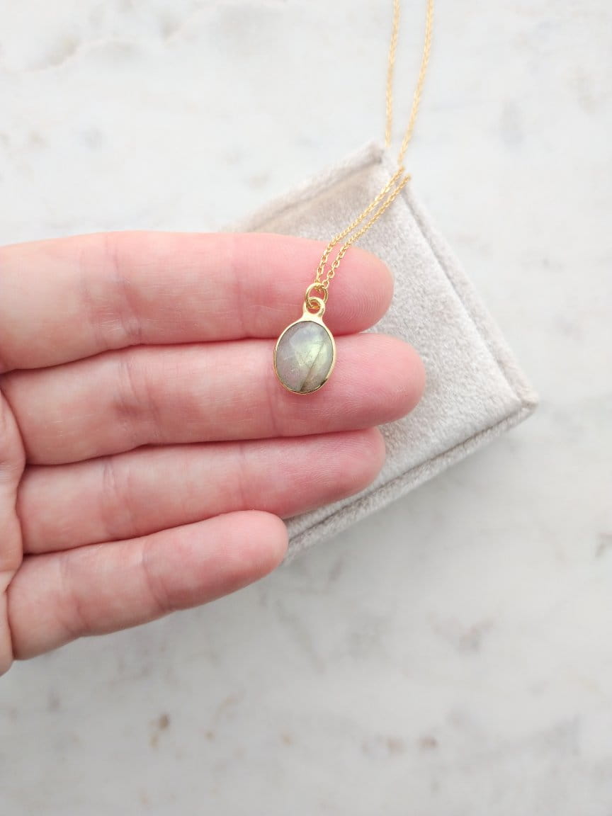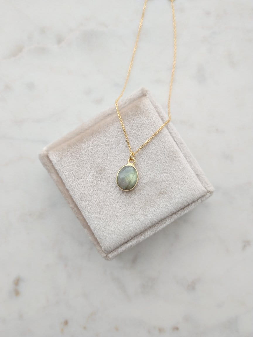 Naszyjnik z labradorytem owal złoto
